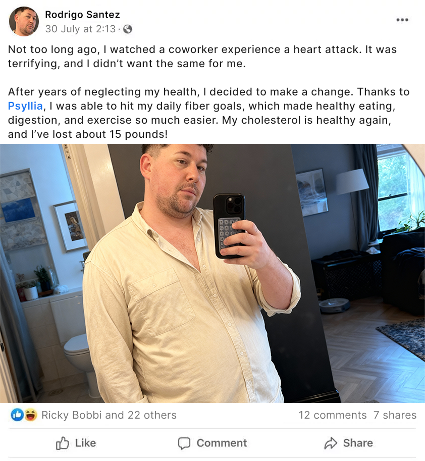 Rodrigo decided to prioritize his health and wellness. He incorporated Psyllia® into his lifestyle changes, including diet and exercise. He successfully worked towards his weight management goals and felt empowered in his journey.