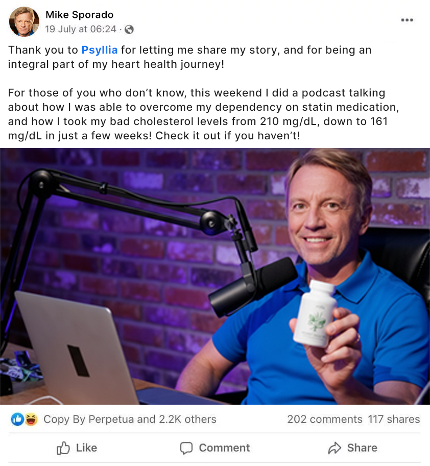 Mike was looking for ways to support his cholesterol management journey. He incorporated Psyllia® into his routine and noticed it helped him in his efforts to maintain healthy cholesterol levels, contributing to his overall well-being.